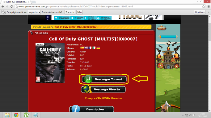 2º Clicar em "Descargar Torrent":