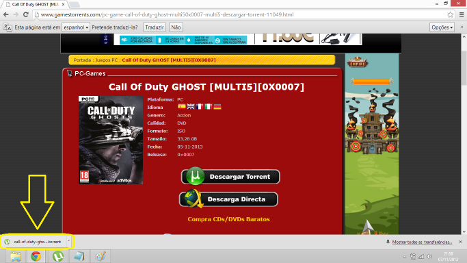 3º Ao carregar em "Descargar Torrent" vai aparecer uma transferência e quando ela estiver completa carreguem nela: